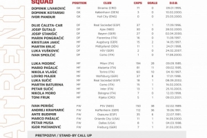候补球员:布鲁诺·佩特科维奇(科贾埃利体育)、奥尔西奇(帕福斯)、伊万诺维奇(本菲卡)、布拉达里奇(维罗纳)、巴什奇(拉齐奥)、贝尔乔(萨格勒布迪纳摩)、科瓦切维奇(费伦茨瓦罗斯)、雷蒂卡(洛桑)、卢卡·斯托伊科维奇(萨格勒布迪纳摩)