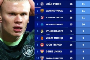 哈兰德2026年16场4球同期五大联赛仅第114位,凯恩12场15球居首