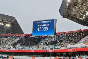 体育资讯03月14日讯 中超第2轮,山东泰山主场对阵北京国安的比赛正在进行。现场大屏幕显示,本场比赛的到场人数为45069人。
