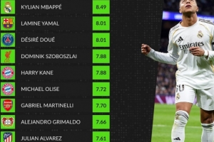 体育资讯2月27日讯 本赛季欧冠淘汰赛即将打响,数据网站Whoscored也盘点了本赛季欧冠16强球员场均评分榜,具体如下:
